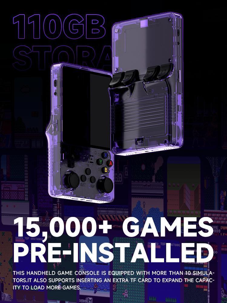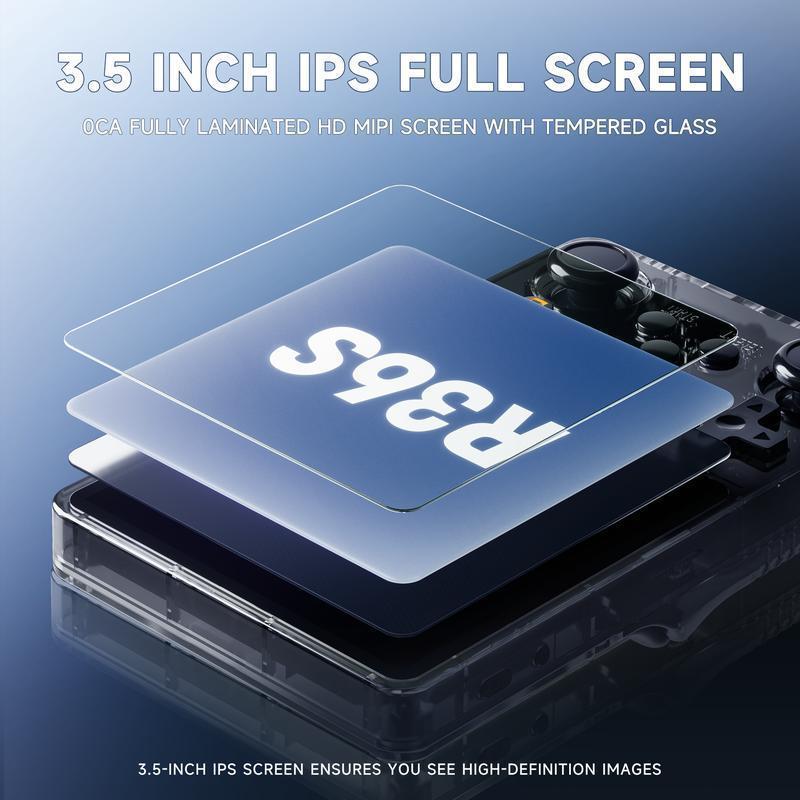 [[Back to the Classics] Dive into the golden age of gaming with 20,000 pre-installed classics, from iconic 2000s hits to retro gems. Featuring 20 vintage console emulators-including NES, SNES, PS1, and more-this console brings the best of gaming history into your hands. Choose between 64GB or 128GB storage and relive the magic of timeless favorites., [Screen & Controls] Display: A 3.5″ HD IPS screen with a resolution of 640*480 ensures vivid colors and crisp visuals. Controls: Dual joysticks, L/R bumpers, and a classic layout deliver precision and comfort for every game. Whether you’re chasing pixel-perfect nostalgia or smooth gameplay, the R36S console bridges vintage aesthetics with modern innovation., [A Journey Through Time] Missed the gaming golden age? Or want to share the fun with your kids? The R36S Retro Handheld Video Game Console is your ticket to the past. With 15,000 games included, it's the ultimate tool to rediscover childhood memories and unforgettable moments. Please note, the R36S does not support WiFi functionality, so it cannot connect to the internet for online gaming or content downloads. , [Compact and Portable] Crafted for on-the-go convenience: Dimensions: 17. 4cm * 8. 4cm * 3. 5cm (Manual measurements may vary slightly by 1-3cm). Portability: Lightweight design with a protective case for easy travel. Play anytime, anywhere-be it at home, during commutes, or on vacations., [Great Gift Idea] Surprise your loved ones with the gift of nostalgia. Perfect for Birthdays, Christmas, or special occasions, the R36S is ideal for gaming enthusiasts of all ages. ]