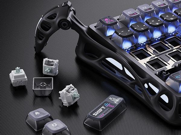 Equipped with two adjustable GravaStar stabilizers for ultimate keyboard stability. Hot-swappable design supports both 3-pin and 5-pin switches, allowing users to customize their typing experience effortlessly.